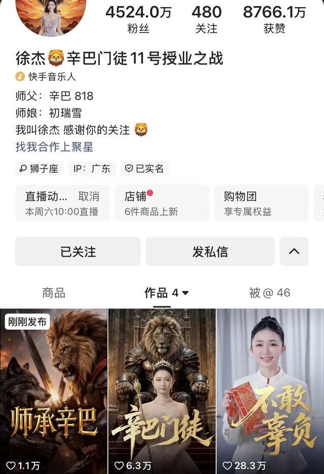 徐杰的账号有4500万粉丝,辛巴有意将其托举成另一个破亿粉丝顶流主播。
